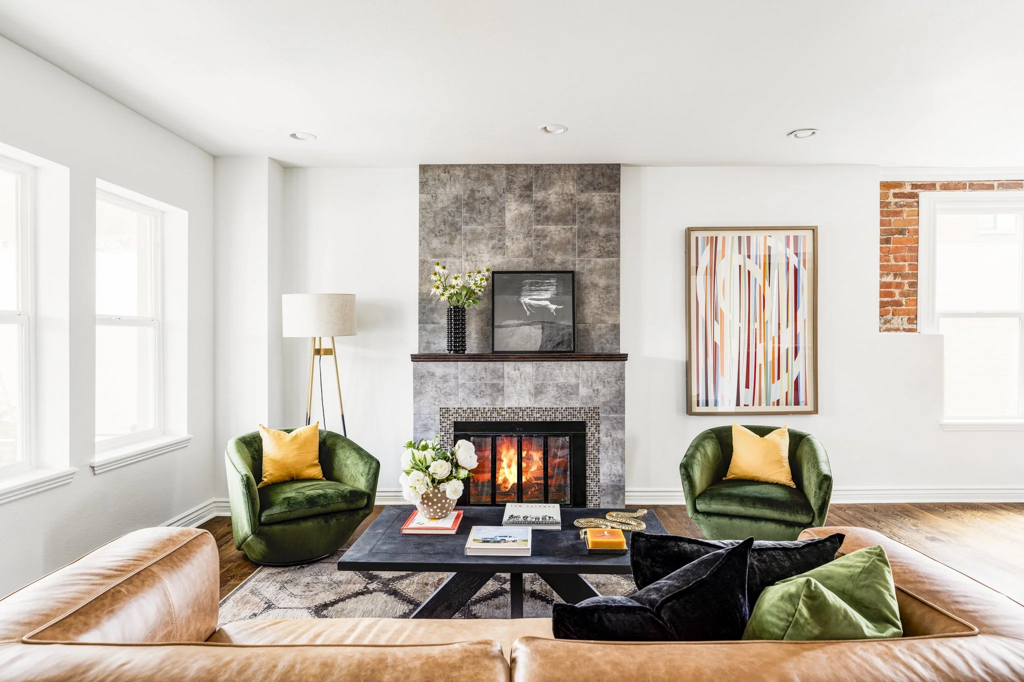 Historic charm and character abound in this Congress Park home. A covered front porch w/ a swing invites residents to spend quiet moments relaxing outdoors. Further inside, a sun-drenched layout unfolds w/ new hardwood flooring, updated paint and cozy exposed brick. A dining area is highlighted by a wood-paneled accent wall. Enjoy relaxing around the warmth of a tiled fireplace in a bright living room. Culinary creativity is inspired in the kitchen flaunting easy backyard access and stainless steel appliances. Escape to a stunning primary bedroom featuring a brick fireplace. A secondary bedroom provides space for guests while a finished attic flex space is complemented by a full bath. Revel in outdoor serenity on a covered patio in a large yard. A custom mural inspires a vibrant outdoor oasis. Additional storage is found in a detached 2-car garage. This home has been updated w/ newer systems. An excellent location between Congress Park and Cheesman Park offers proximity to coveted amenities.